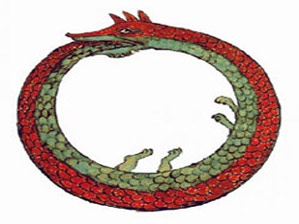 Ouroboros désigne le dessin d'un serpent ou d'un dragon qui se mord la queue. Il s'agit d'un mot de grec ancien, latinisé sous la forme uroborus qui signifie littéralement "qui se mord la queue".