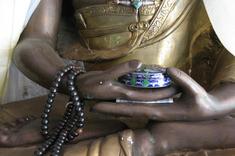 Il y a la récitation de mantras. Les mantras sont des syllabes qui, la plupart du temps, n’ont pas de signification propre. C’est le contraire même de la prière. Dans la prière chrétienne on adresse un vœu à une entité qui est extérieure et supérieure à l’homme. Dans la prière bouddhique on adresse un vœu à soi-même, à notre nature de bouddha. Lorsque l’on prie devant une statue du Bouddha, on ne vénère pas cette statue en tant qu’elle, cette statue est uniquement là pour nous rappeler que nous avons tous en nous une nature de bouddha qu’il faut réveiller par la méditation et la prière.