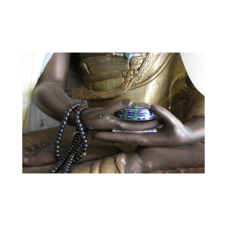 Le Bouddha n'est pas vénéré comme un Dieu, ou comme un saint, mais comme le sage ultime, comme la personnification de l'Eveil. Le mot sanscrit "bouddha", signifie "celui qui a réalisé", celui qui a assimilé la vérité, et le mot par lequel il est traduit en tibétain, "sanguié", est composé de deux syllabes : "sang" signifie qu'il a "dissipé" tout ce qui voile la connaissance et aussi qu'il s'est "éveillé" de la nuit de l'ignorance, et "guié" signifie qu'il a "développé" tout ce qui est à développer, c'est-à-dire toutes les qualités spirituelles et humaines de connaissance et de compassion.