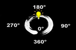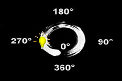 - zéro degré, quatre-vingt-dix degrés, cent quatre-vingts degrés, deux cent soixante-dix degrés, et trois cent soixante degrés.