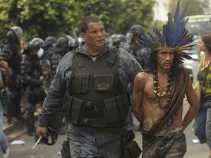 Violente expulsion le 22 mars 2013, à Rio de Janeiro, des Indiens installés sur les lieux historiques de l'ancien musée de l'Indien.
