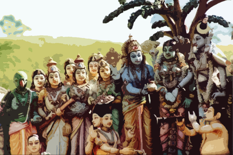 La place du Dieu suprême, dans l'hindouisme de l'époque, était tenue par Brahmâ, qui intervient à plusieurs reprises dans les textes canoniques.