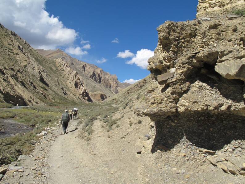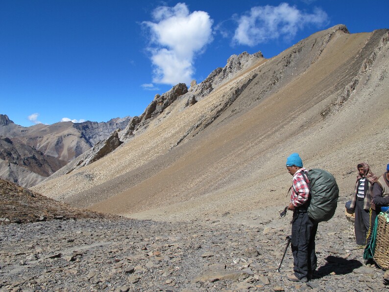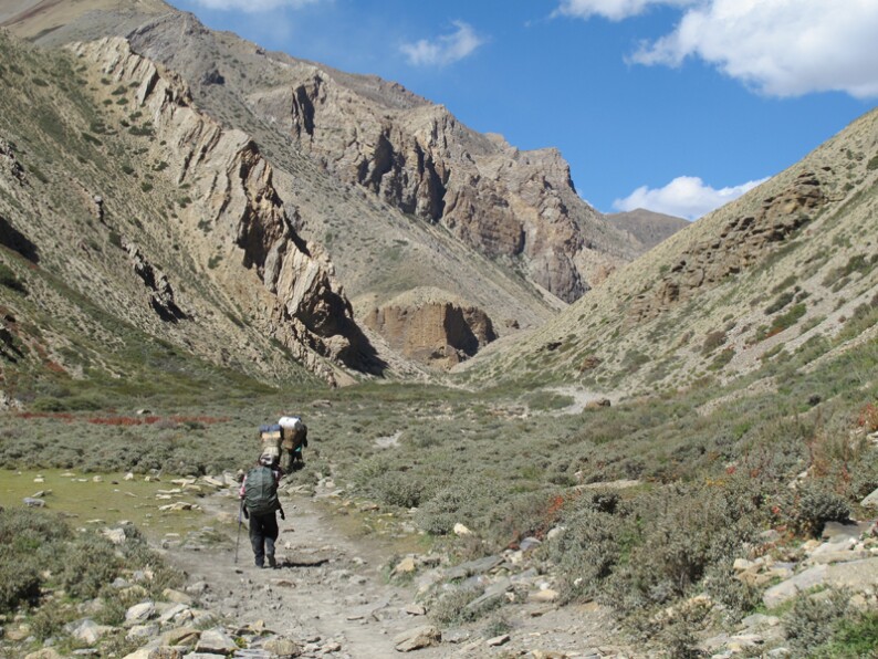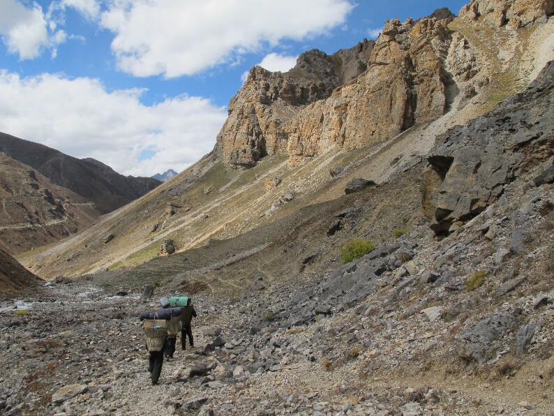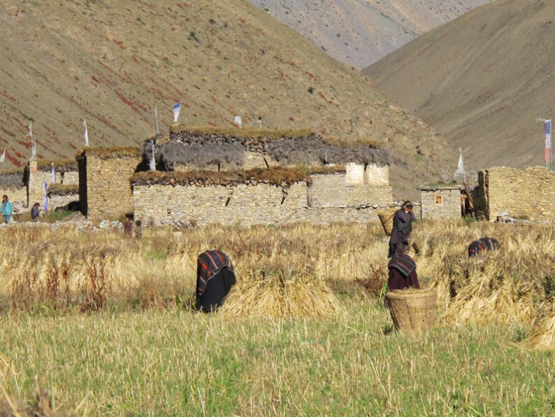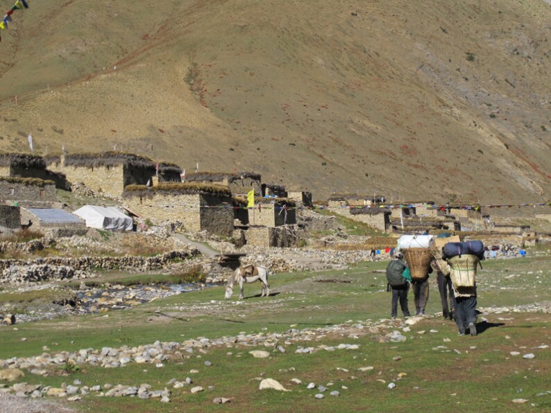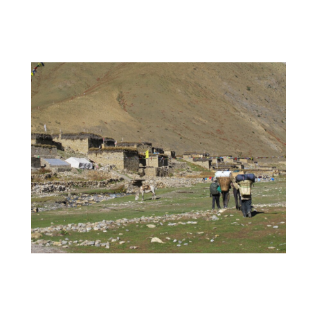 Les conditions de vie dans le district de Dolpa sont extrêmement dures. Cultures et pâturages y sont rares. Pour survivre, les habitants de ces contrées perdues pratiquent un nomadisme pastoral qui les conduit chaque année du Tibet aux frontières de l'Inde, à travers les cols vertigineux, tous de plus de 5000 m de l'Himalaya.