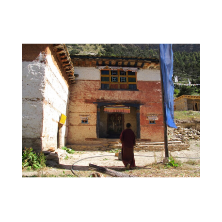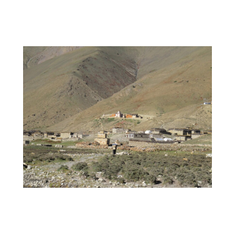 Adossé au Tibet dont il a la culture, le DOLPO étend ses 5.500 km2 de montagnes au Nord-Ouest du NEPAL. Protégée au coeur des Himalayas, la TARAP (la "Vallée Aux Chevaux Excellents") aligne ses villages tibétains le long de la rivière de cristal. Sur ces hauteurs de plus de 4.000 m, le froid rivalise avec le vent, la neige et le soleil cuisant pour rendre la vie des habitants rude et précaire. Ceux-ci survivent dans des maisons forteresses sans fenêtre, sans chauffage, où seul brûle un maigre feu de bouse de yak.