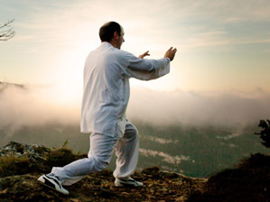 LES PRINCIPES : Tai-Chi-Chuan signifie "boxe du faîte suprême". En tant que discipline de combat, sa particularité est de faire appel à l'énergie vitale (qi) qui circule dans le corps, ainsi qu'à une maîtrise parfaite de la respiration. Cela en fait un art martial que l'on qualifie d'interne, dans la mesure où l'objectif recherché n'est pas la force musculaire, mais le bon usage de sa puissance énergitique. Le pratiquant apprend à contrôler les flux de son qi, pour le diriger vers l'extrémité du cors qui va donner le coup : poing, pied, genou, ou encore le coude.